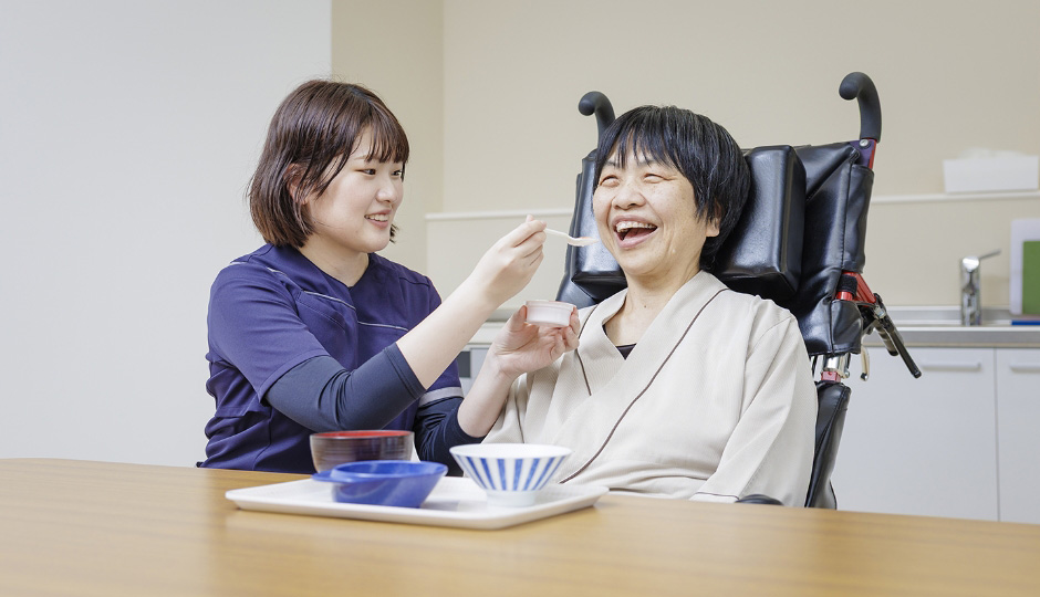 発声や発語の訓練、言語・聴覚機能の改善、高次脳機能の維持・向上、摂食・嚥下機能のリハビリを通じて、笑顔で会話を楽しみ、安全に食事ができるよう支援します。
