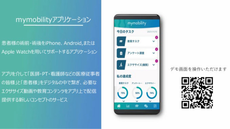 当院では、肩や股関節の手術を受けた患者さん向けに、術後の回復をサポートするアプリ「マイモビリティ」を活用しています。このアプリでは、