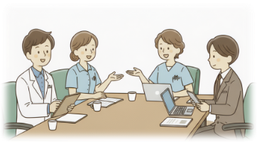 在宅ケア委員会は1か月に1度程度、多職種で会合しています。