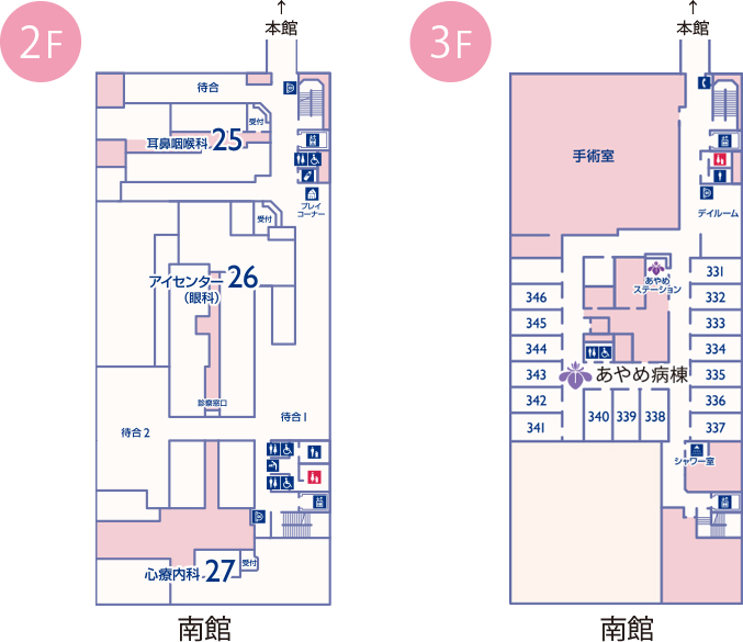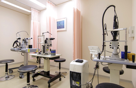 視野検査室、眼科撮影室など各種精密検査ごとに専門の検査室を完備。 入院患者にも専用の検査診察室を設け、外来待合を通らずに特殊検査のできるレイアウトが特徴です。