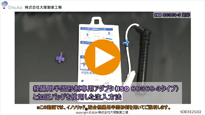バンパーボタン型の胃ろうから栄養を注入する、一連の流れを確認できる参考動画とパンフレットです。