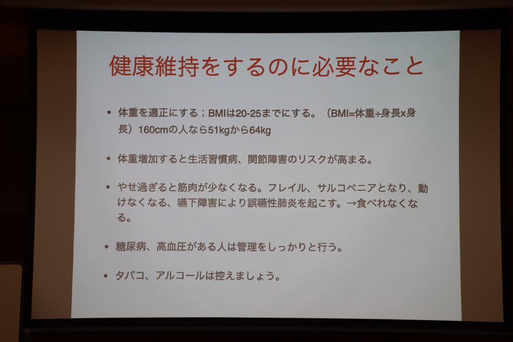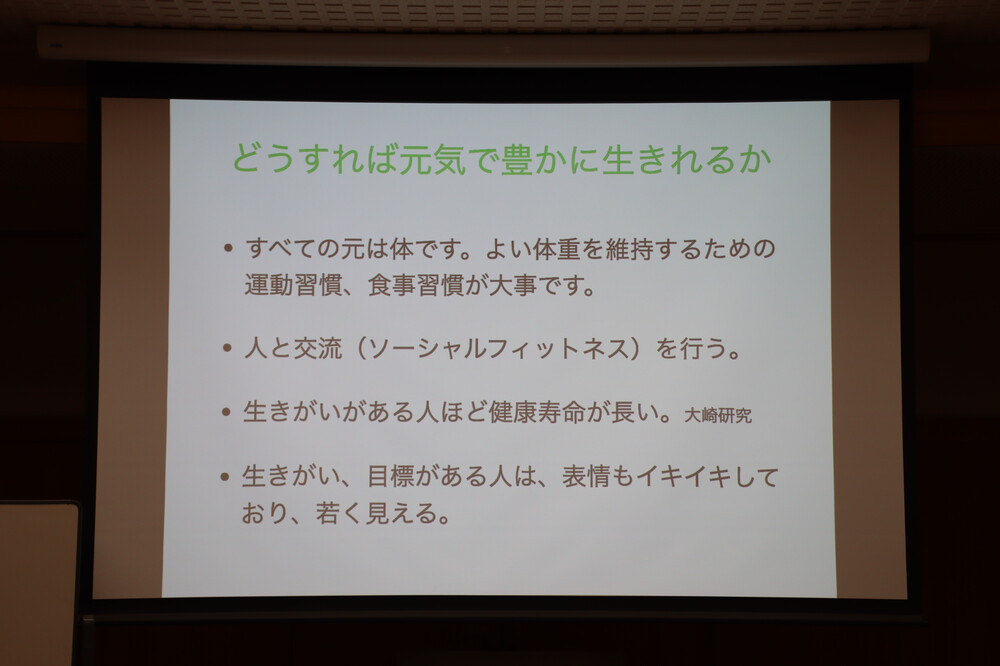 この会は、ただ働き続ける「一生懸命な人生」だけでなく、その先の人生――いわば“第二の人生”を、どう豊かに生きるかを考える場です。医療関係者や参加者それぞれの経験を持ち寄り、健康や生き方について共有し合う、大変意義深い時間となっています。