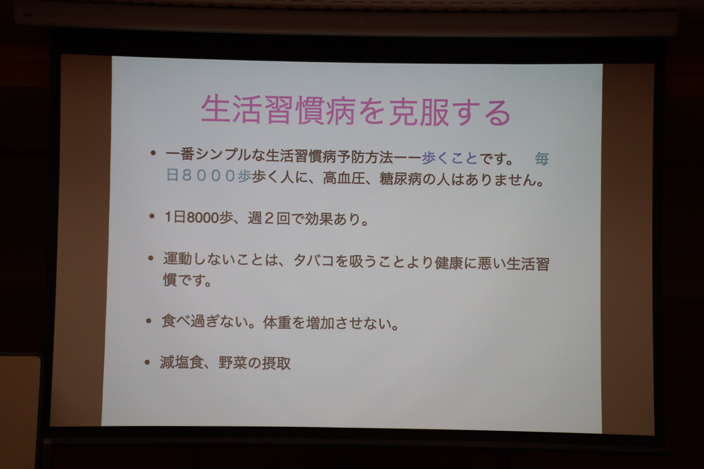 適度な運動、バランスの良い食事、生活習慣の見直し。特に「歩くこと」は最も基本であり、非常に効果的な健康法です。二つ目は「心の健康」です。これが、これからの時代において特に重要になります。心の健康を保つためには、