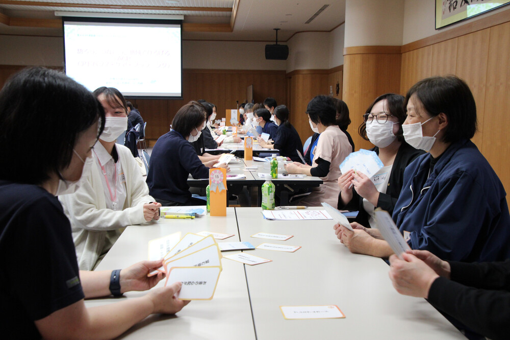 ACPは医療者や介護家族のためだけでなく、何よりも「その人らしく幸せに生きる」ために行うものだということを、心を込めてお伝えしました。院内外の多職種の皆様が「ACPは大切だけれど難しい。自分の立場で何ができるのか」と悩まれていることも強く感じました。患者さんや利用者さんの想いを汲み取るには、まず自分の心を大切にすること。『レッツトークカード』のグループワークは自分にとって大切なものを見つめ直す貴重な時間となりました。