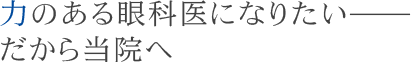 なぜか。その理由はひとつ。「力のある眼科医になりたい」という純粋な思いからです。